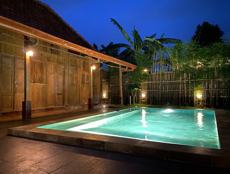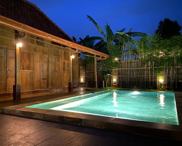 Villa Mojo is a comfortable and thoughtfully designed space that celebrates the elegance and beauty of local culture, history and materials. Walk back in time to a authentic desa wisata (arts & crafts village) limasan and joglo (types of traditional structures), incorporating 150-year-old traditional teak buildings but with modern flourishes. Our goal is for your stay to be calm and indulgent while giving you a deeper cultural connection to our community.